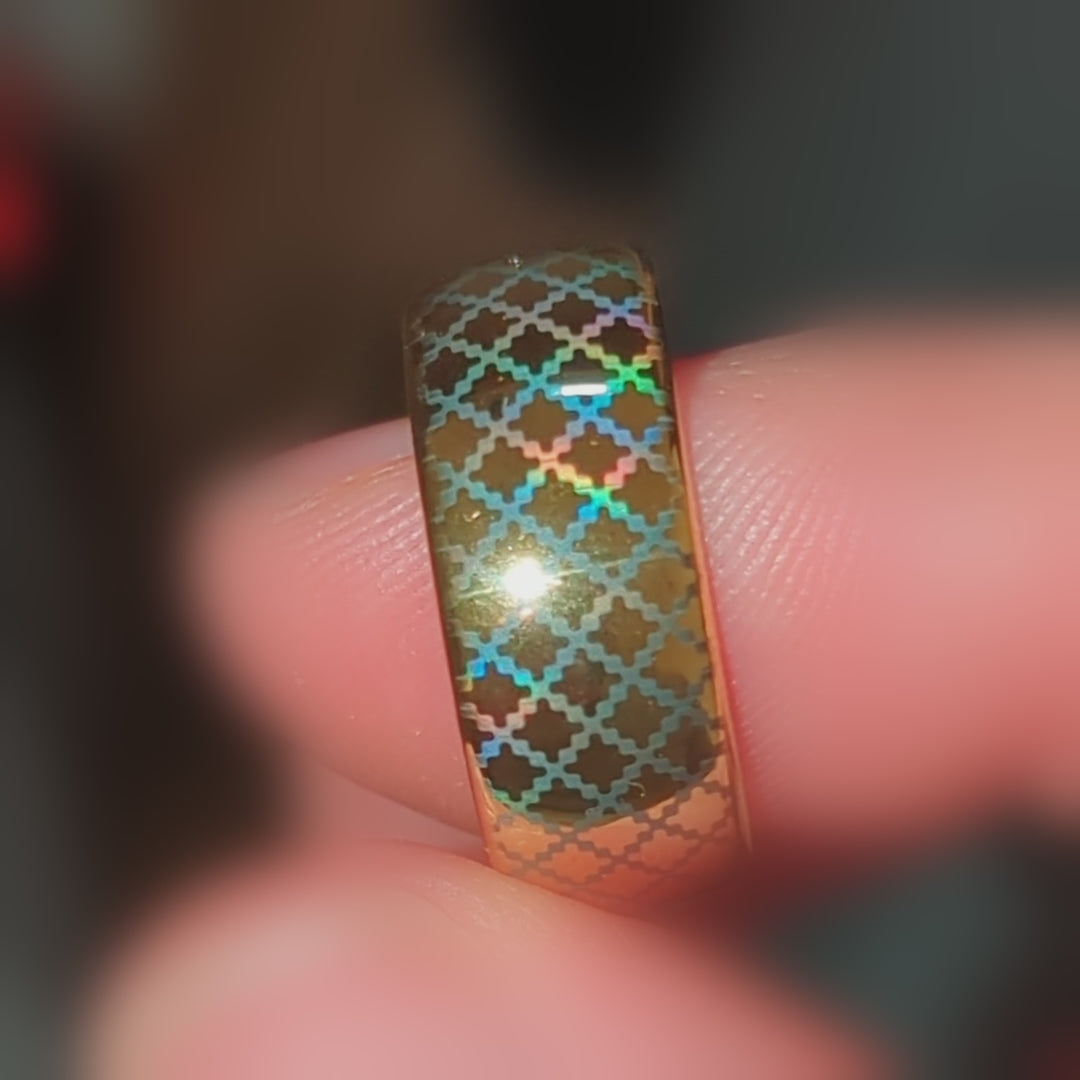 Unsere holografische Gravur bleibt im Schatten unsichtbar – und erstrahlt im Sonnenlicht in allen Farben des Regenbogens. Wenn du etwas wirklich Persönliches suchst – etwas, das sich nie verändert, aber dich jedes Mal aufs Neue überrascht, wenn das Licht es trifft – hast du es vielleicht gerade gefunden.