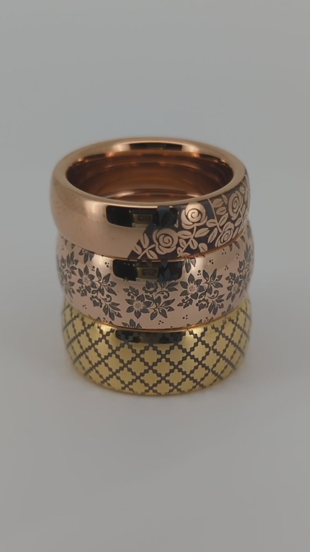 Ein klassisches Muster, das durch präzise Gravur auf Licht reagiert und feine Farbspiele sichtbar macht.